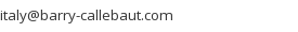 • Barry Callebaut Italia S.p.A., Viale Milano Fiori Strada 1 Palazzo E2, 20090 Assago (MI) (IT), Tel: +39 025 751 44 87 - 42 94, Fax: +39 025 779 07 83 - 45 51, italy@barry-callebaut.com