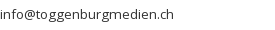 • Toggenburger Verlag, Toggenburg Medien AG, Ebnater Str. 18, Postfach, CH-9630 Wattwil (CH), Tel: +41 71 987 48 48, Fax: +41 71 987 48 49, info@toggenburgmedien.ch