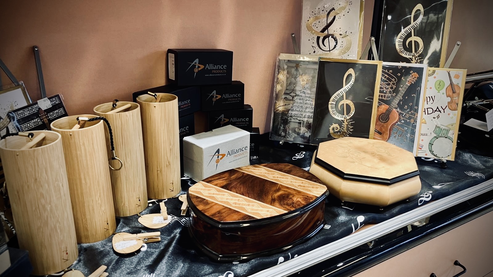 L’entreprise offre une magnifique exposition de pianos à queue et piano droits sur 2 étages, de percussions et d’instruments à vent, ainsi qu'un superbe Guitar Shop avec un atelier de réparation de guitare entièrement consacré et spécialisé à la guitare et au travaux de lutherie.