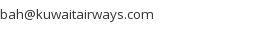 • Kuwait Airways Corporation, Manama Center Govt. Road P.O.Box, 5220 Bahrain (BH), Tel: 17225229, Fax: 17225228, bah@kuwaitairways.com